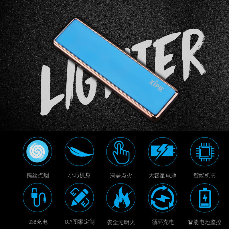 创意USB防风充电打火机超薄滑盖无声电子迷你小巧便携高颜值刻字