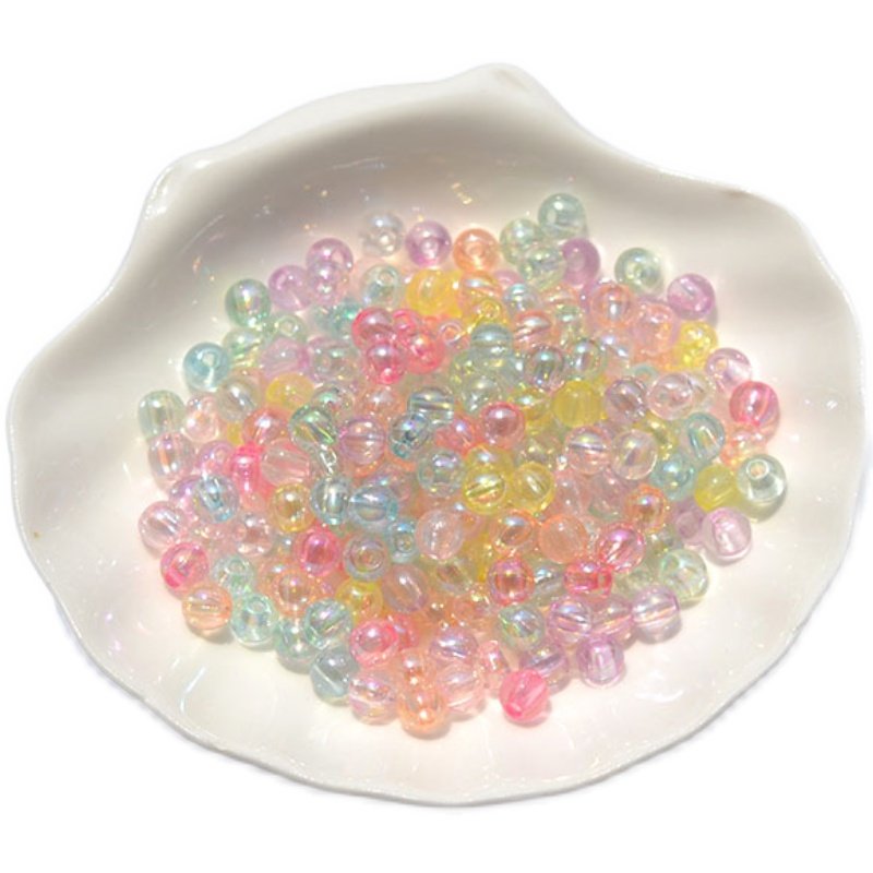 6MM透明彩色亚克力圆形散珠子DIY饰品配件幻彩电镀小隔珠手链材料