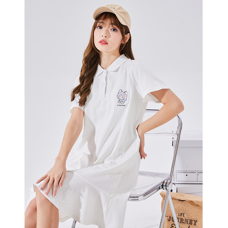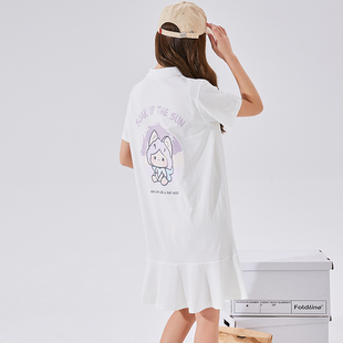 鱼尾T恤裙宽松裙子潮 犬系少女短袖 唐狮Polo连衣裙夏装 新款