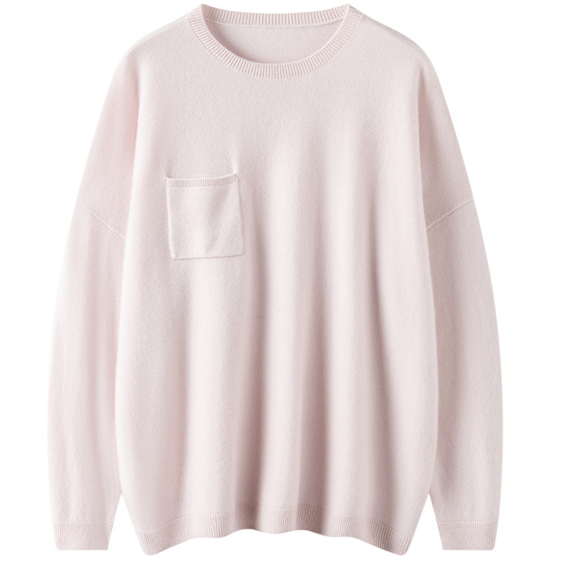 高雅气质范 女100%纯羊绒毛衣套头针织宽松慵懒风春夏 圆领羊绒衫