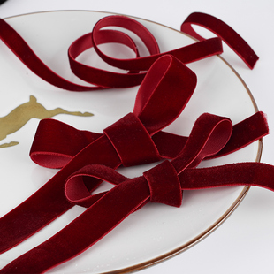 天鹅绒单面绒蝴蝶结材料圣诞礼品酒红丝带圣诞节装 饰彩带丝绒丝带