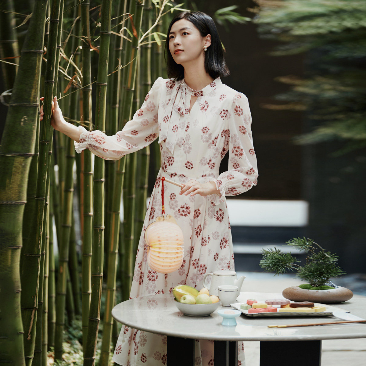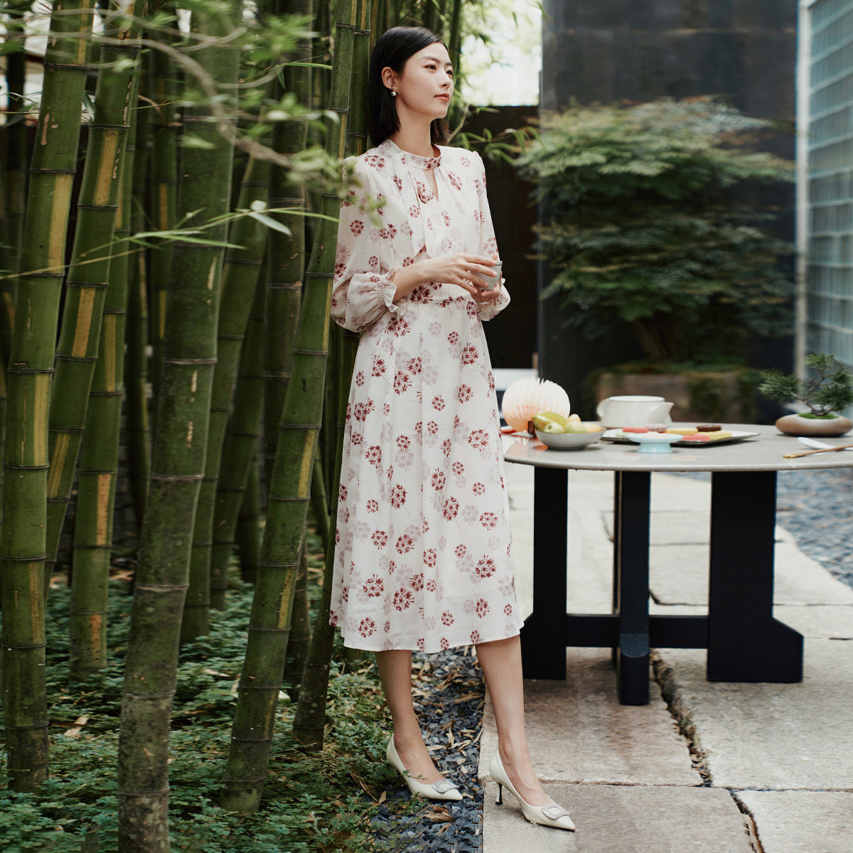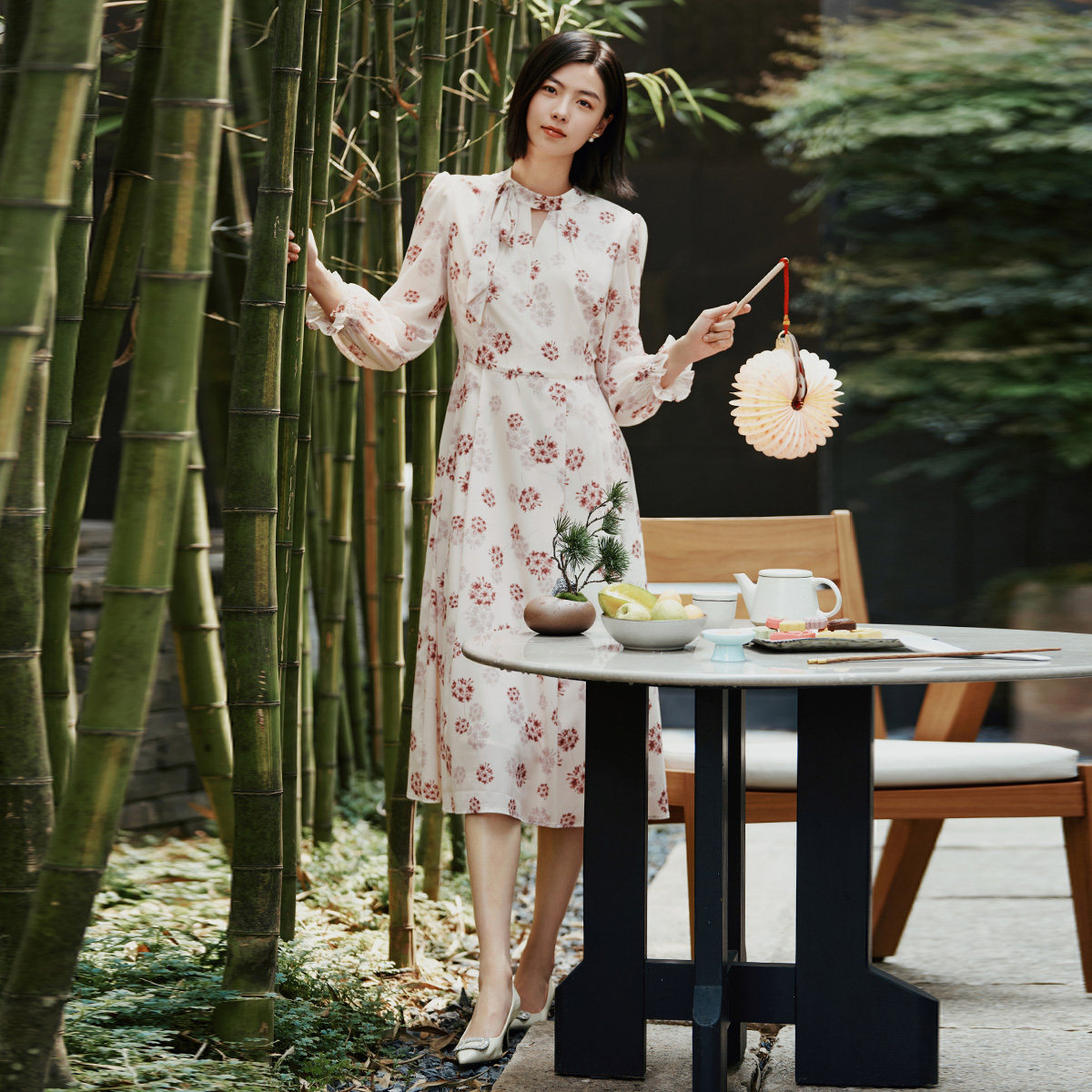 连衣裙 飘带领修身 1E31L3297 高级简约新中式 歌蒂诗春专柜新款