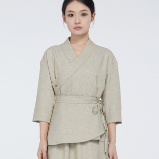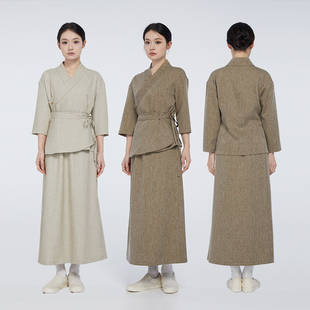 爱斯坦新中式 仿棉麻复古风 餐饮工作服茶馆高档素食餐厅服务员服装