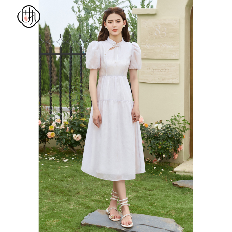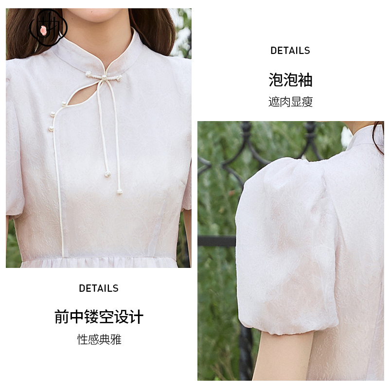 高腰短袖 固执夏季 立领盘扣泡泡袖 中式 连衣裙71432LQ08171 新款