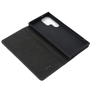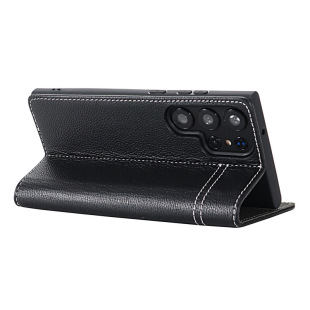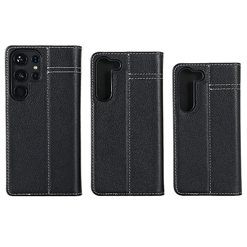 适用三星S22 Ultra保护套 23战舰简约头层牛皮手机套翻盖支架S23