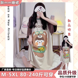 睡裙女孩短袖 中长款 大码 夏天女薄款 睡衣200斤宽松加肥加大码 夏季