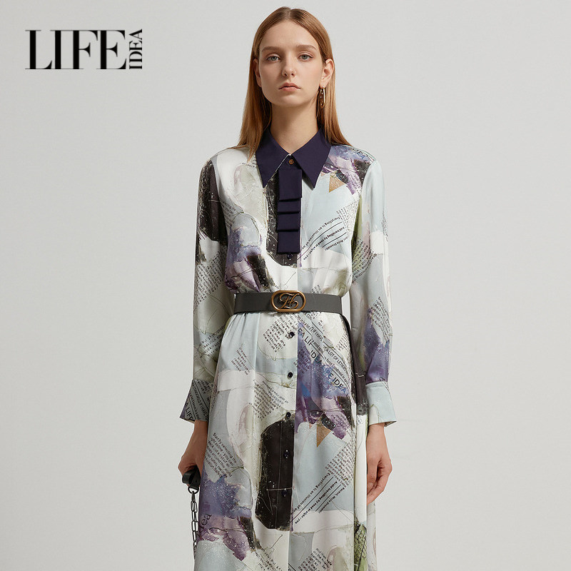 小众设计连衣裙御姐收腰显瘦印花裙子 新款 莱芙艾迪儿品牌女装 春季