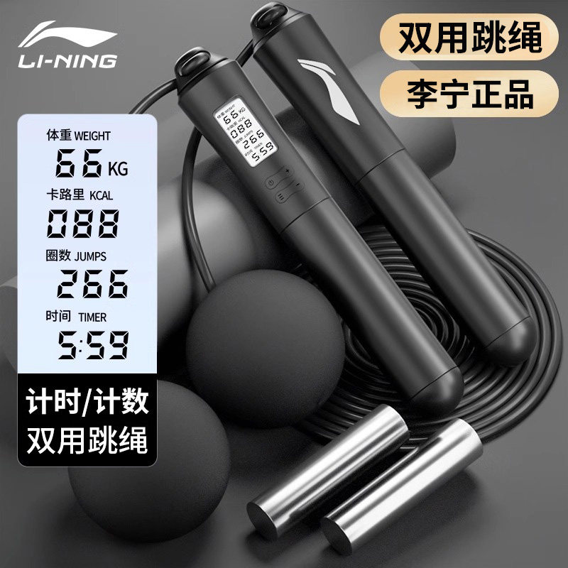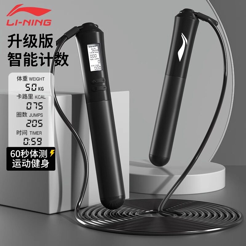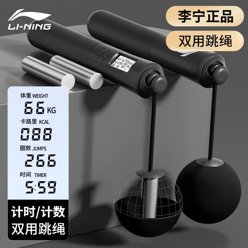 李宁无绳跳绳减肥专用健身运动负重力计数款 专业燃脂绳子无线 男士