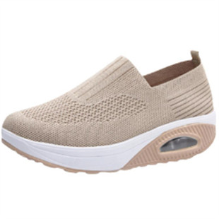 坡跟妈妈单鞋 透气防滑旅游运动鞋 女厚底增高摇摇鞋 春秋老北京布鞋