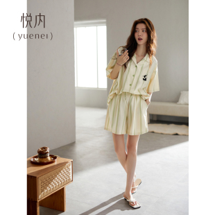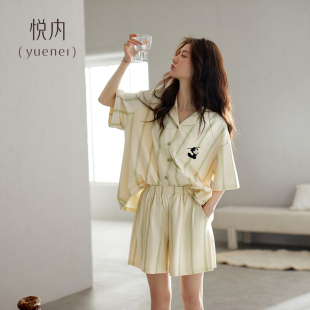 女士家居服夏款 悦内睡衣女款 短裤 纯棉短袖 熊猫国潮休闲可外穿 夏季