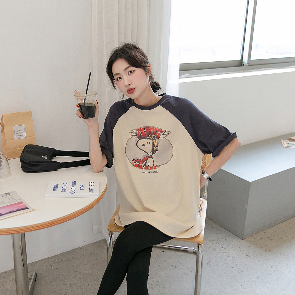 时尚 孕妇装 t恤女夏季 宽松短袖 休闲卡通遮肚子小个子纯棉上衣 夏装