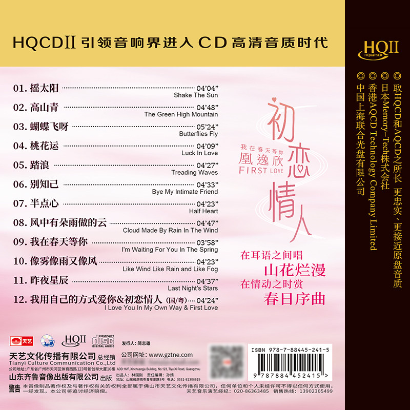 天艺唱片凰逸欣 HQCDII高品质CD发烧HIFI碟唱片hq2 初恋情人