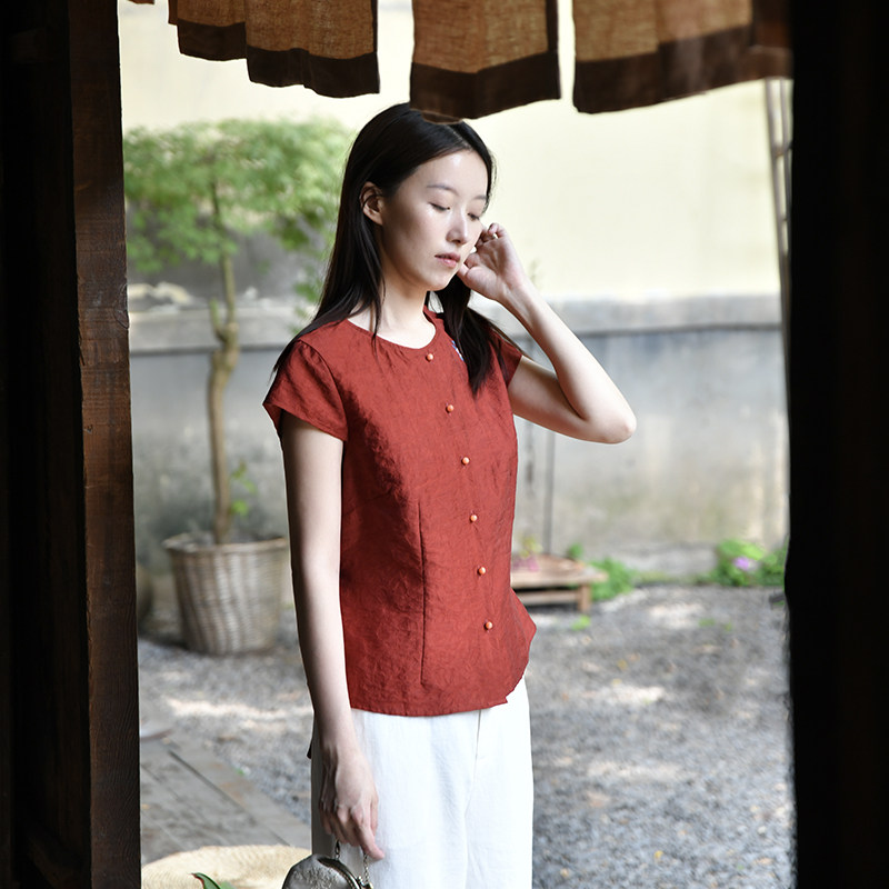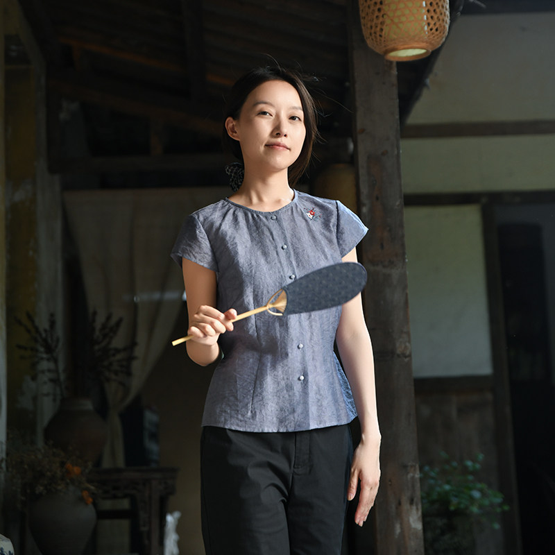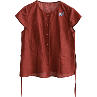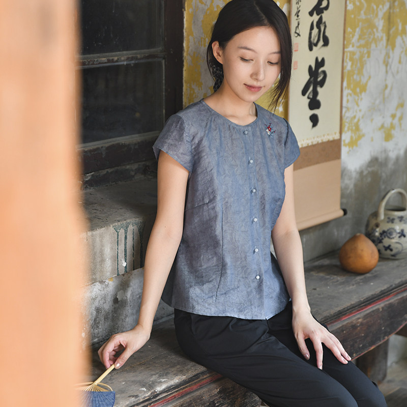 绣花单排扣衬衫 25CXA 前世今生淑女文艺圆领短袖 晚花 299