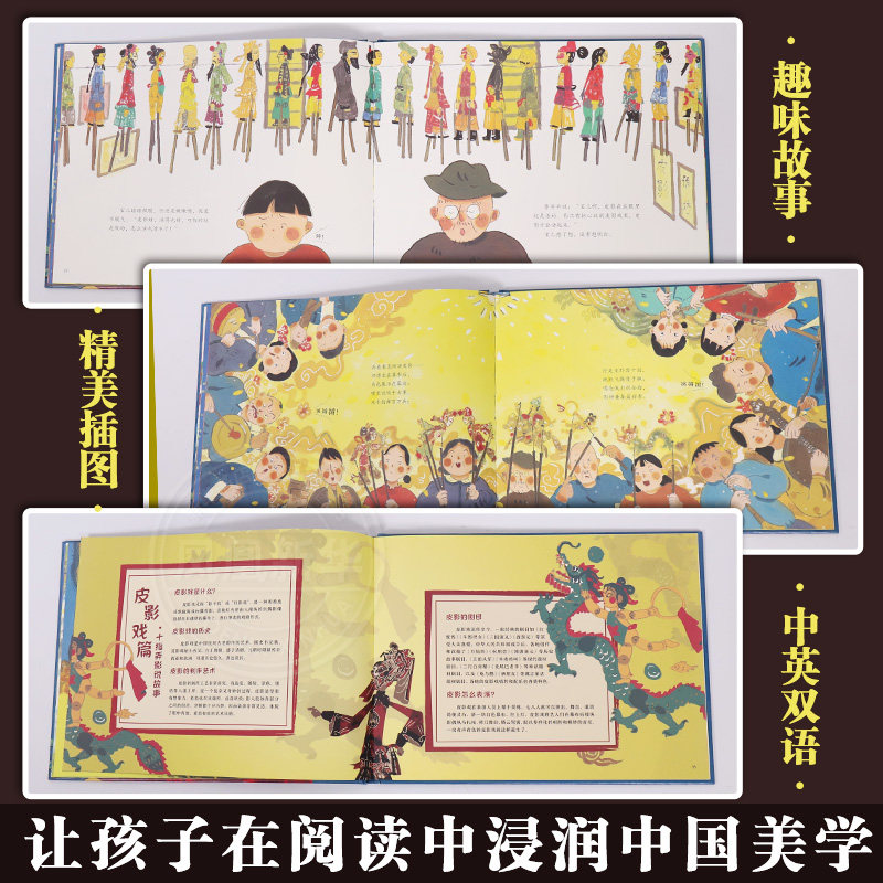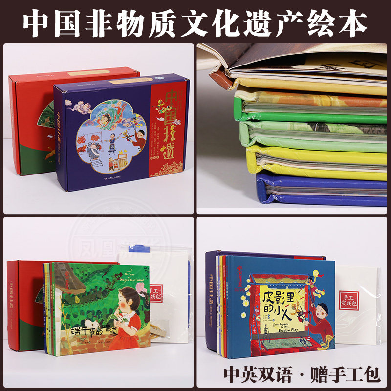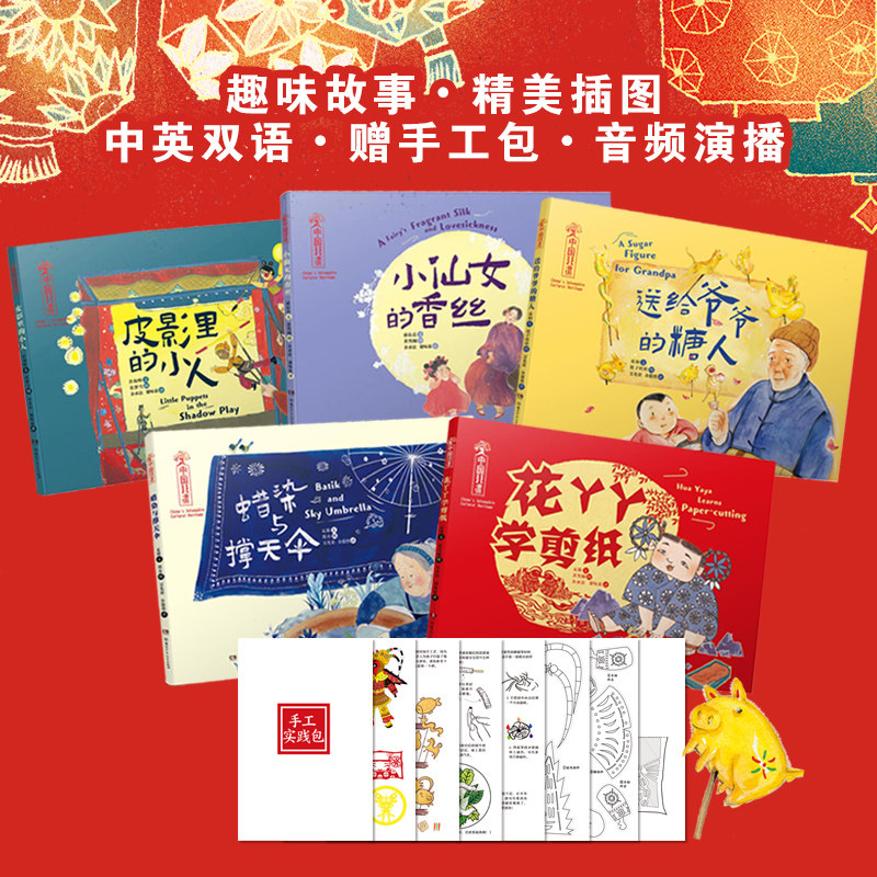 6岁 绘本3 花丫丫学剪纸仙女 香丝皮影里 糖人中英双语亲子绘本 中国非遗全10册 小人蜡染与撑天伞送给爷爷 精装