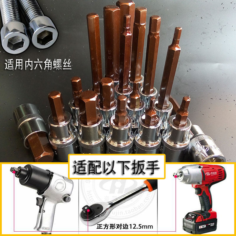 内六角套筒 2电动扳手压配头子加长硬s2风炮内六角批头维修工具