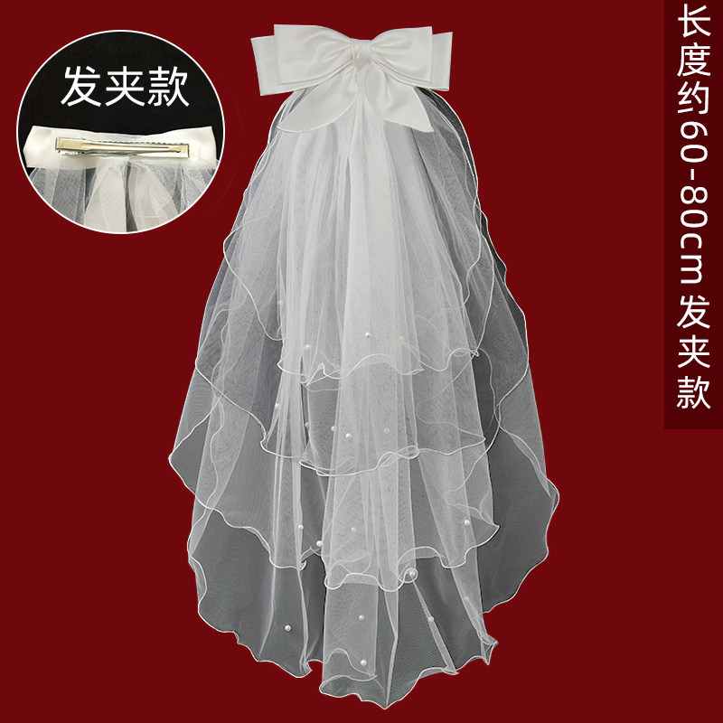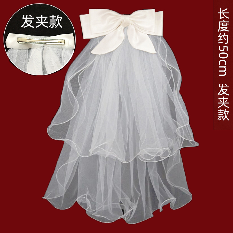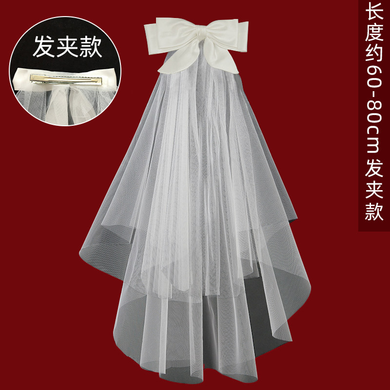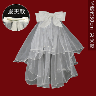 蝴蝶结头纱领证登记求婚订婚结婚婚礼新娘轻婚纱高级感短款 白色小