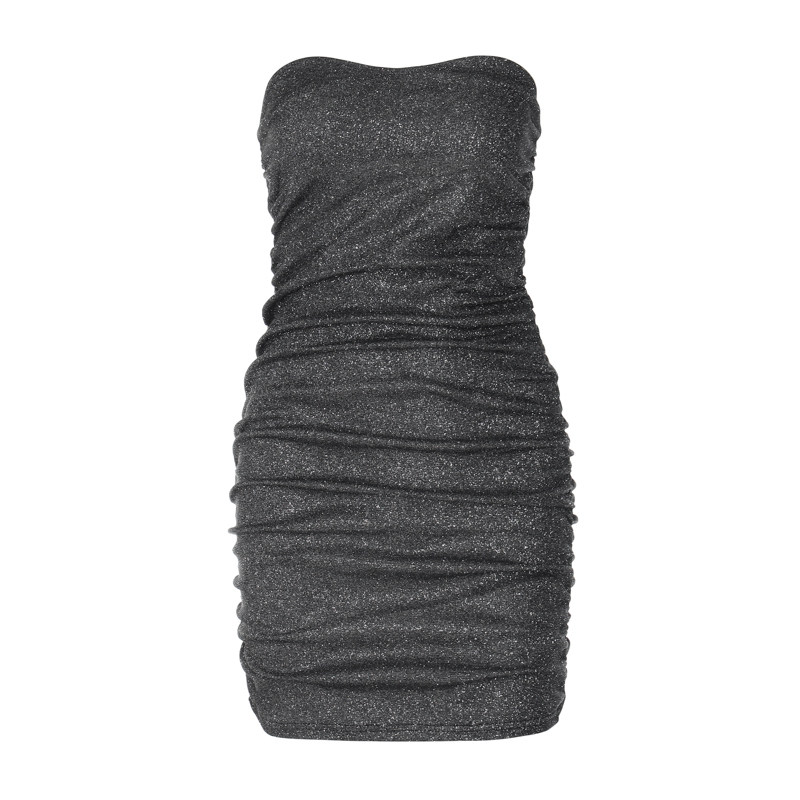 欧美风性感一字领亮闪闪裹胸连衣裙女纯色褶皱高腰显瘦包臀裙短裙
