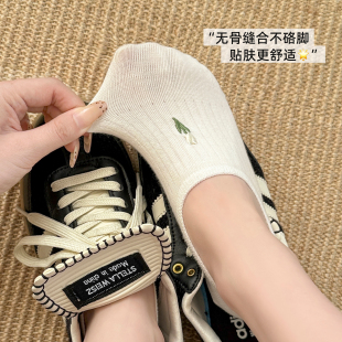 船袜女纯棉不掉跟防滑浅口短袜子女夏薄款 白色袜子女2026新款 爆款