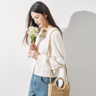 轻薄呼吸感透气纯棉刺绣提花衬衫 假日法式 通勤衬衣 BRAND夏季 RPB