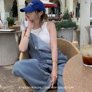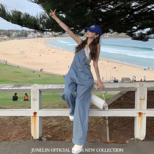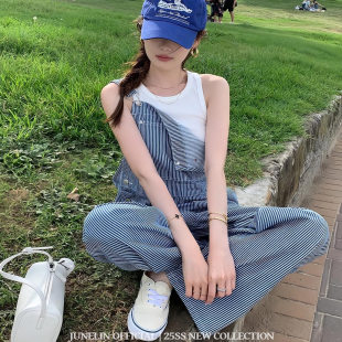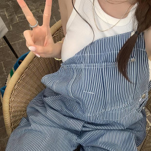 女街头宽松显瘦休闲裤 六月林 背带裤 复古条纹直筒工装 子 韩版