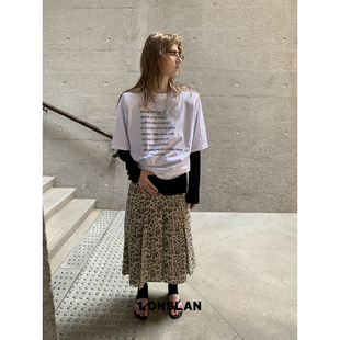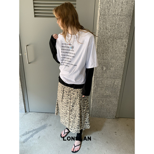 LONSLAN25SUMMER 设计感腰边红色线条豹纹百褶半裙