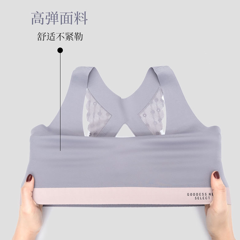 防溜肩美背文胸后背交叉肩带不掉内衣胖大码 运动胸罩大胸显小防震