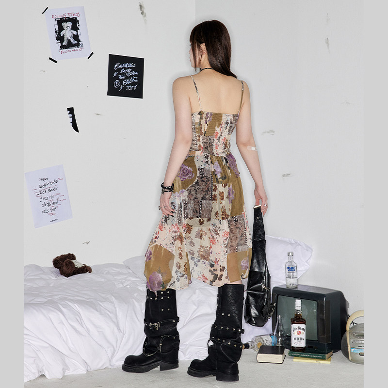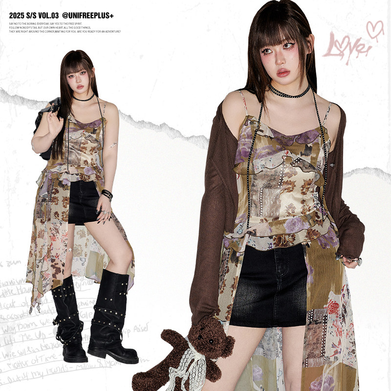 废土风雪纺吊带背心不规则外穿上衣 UNIFREEPLUS大码 明星同款