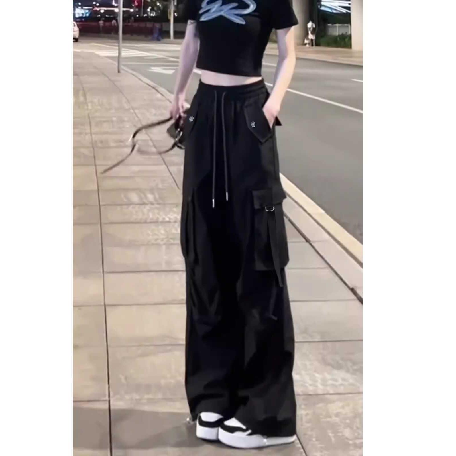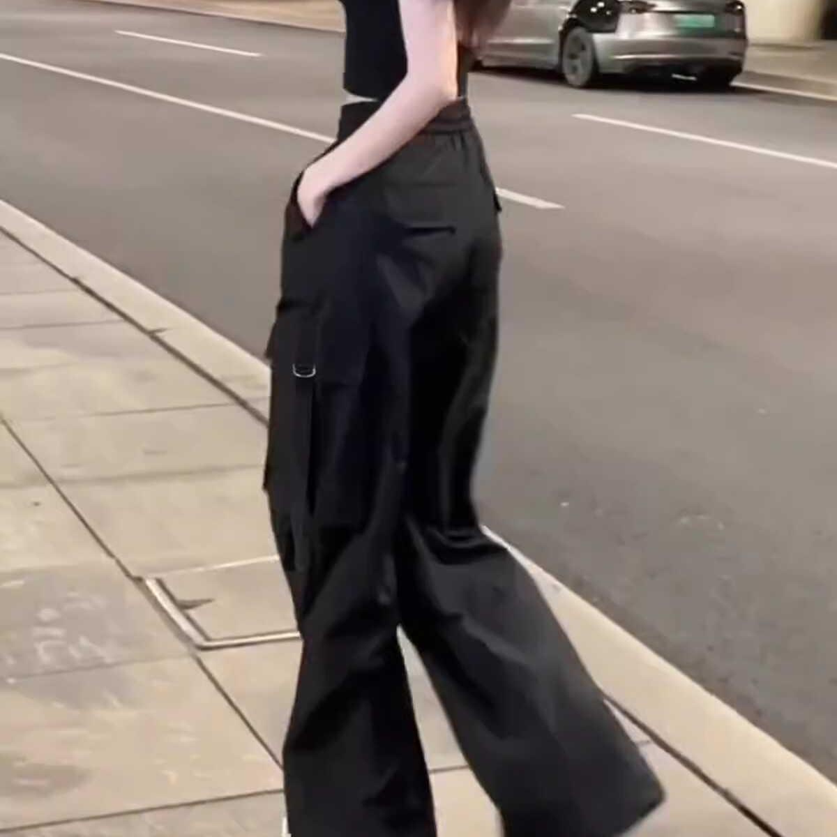 女早秋新款 裤 大码 胖MM降落伞登山裤 美式 子阔腿运动裤 高街黑色工装