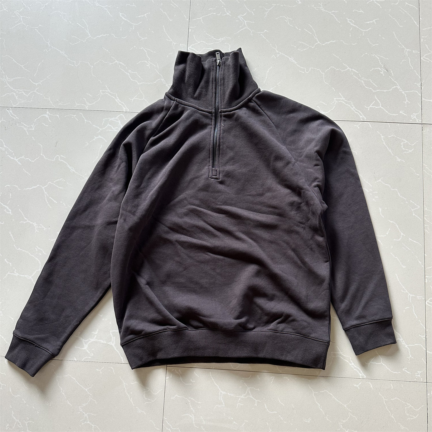 外贸男女卫衣纯色宽松 高立领纯色半拉链宽松毛圈卫衣 断码
