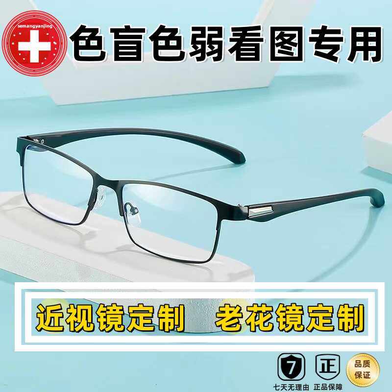 色盲色弱眼镜色弱纠正眼镜无色透明查看图红绿夹片老花近视定制