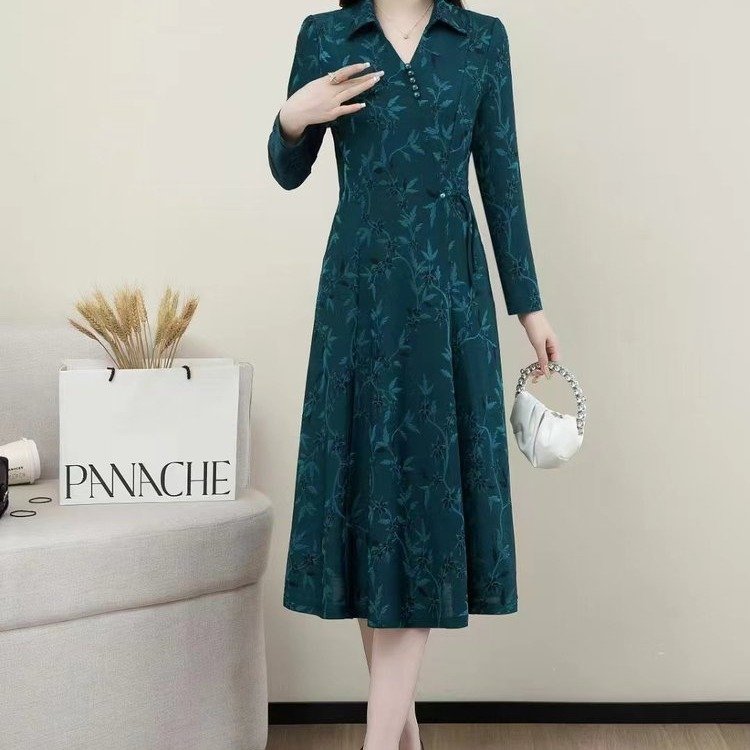 打底衫 中老年时尚 t恤女秋装 50多岁妈妈洋气上衣翻领纯棉长袖 女装