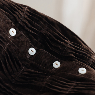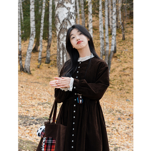 可穿三季 古苔 2024新款 连衣裙 可收腰复古文艺 咖啡豆色灯芯绒衬衫
