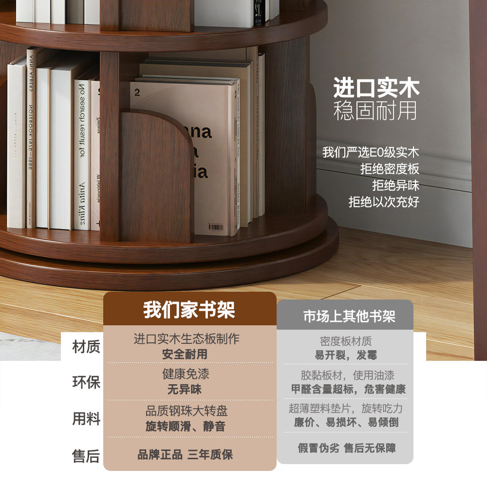 旋转书架落地置物架书柜子家用儿童客厅简易靠墙展示柜实木杂物柜