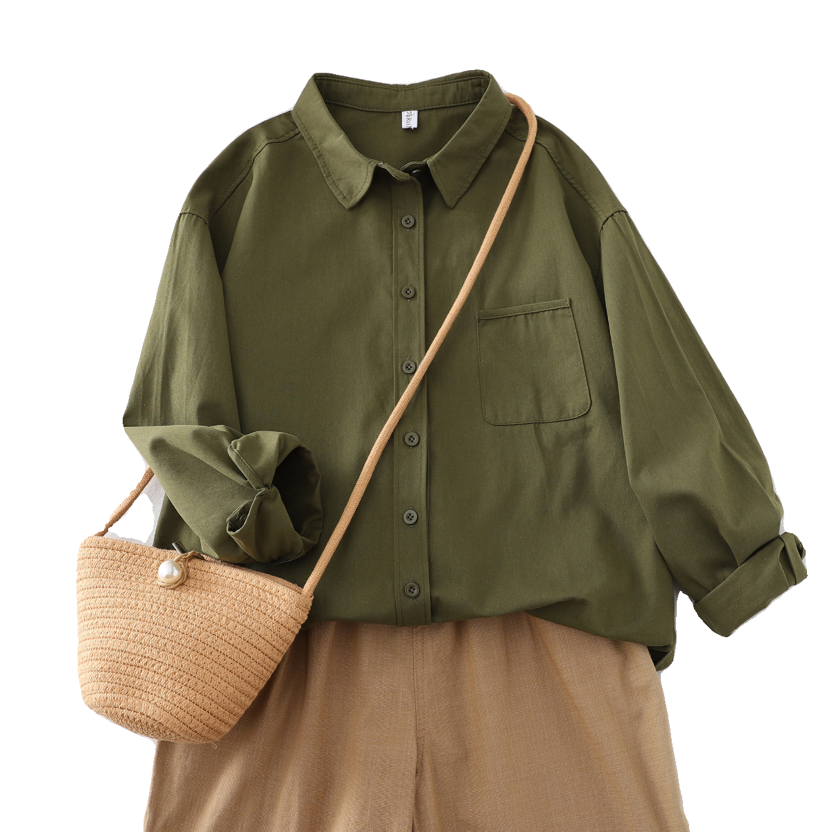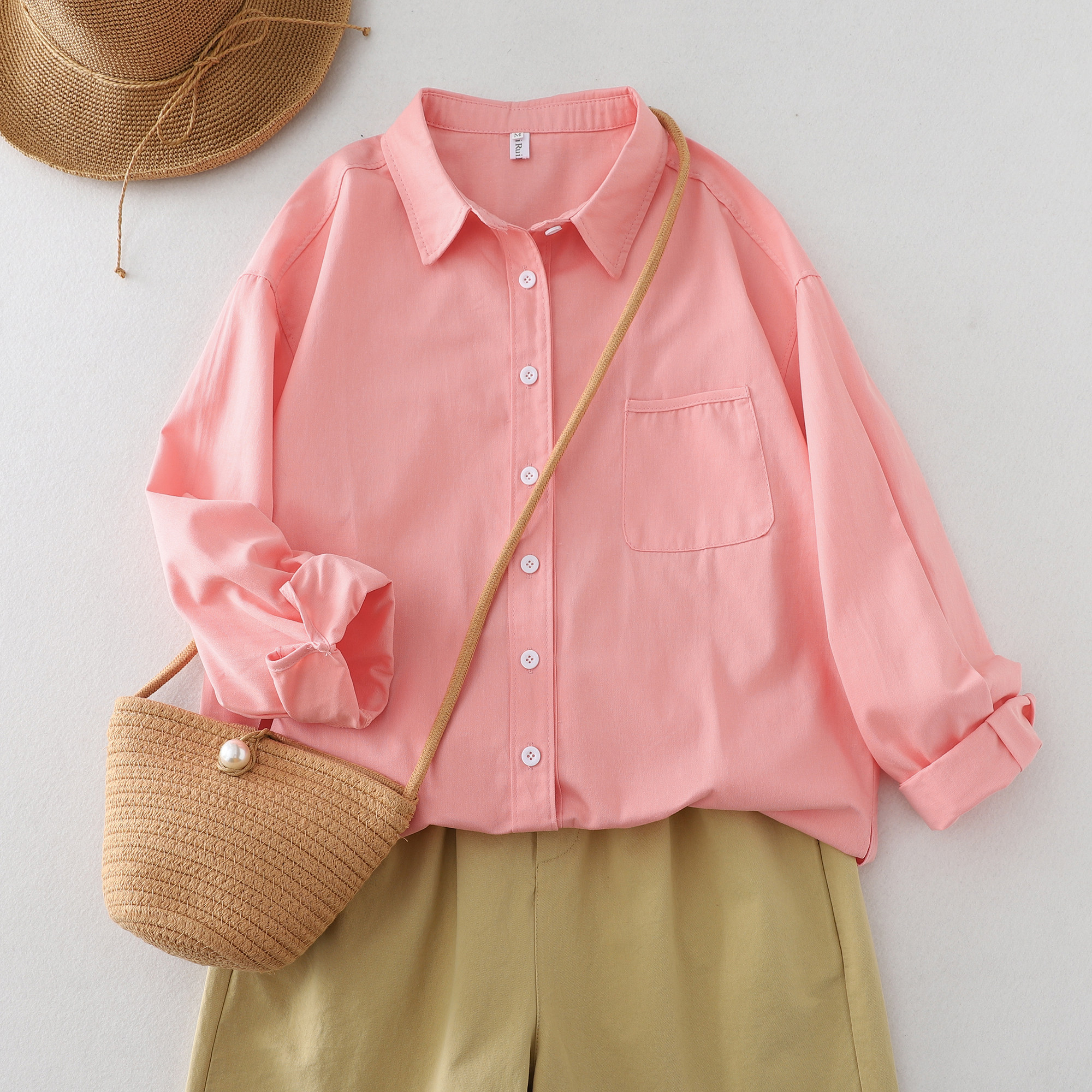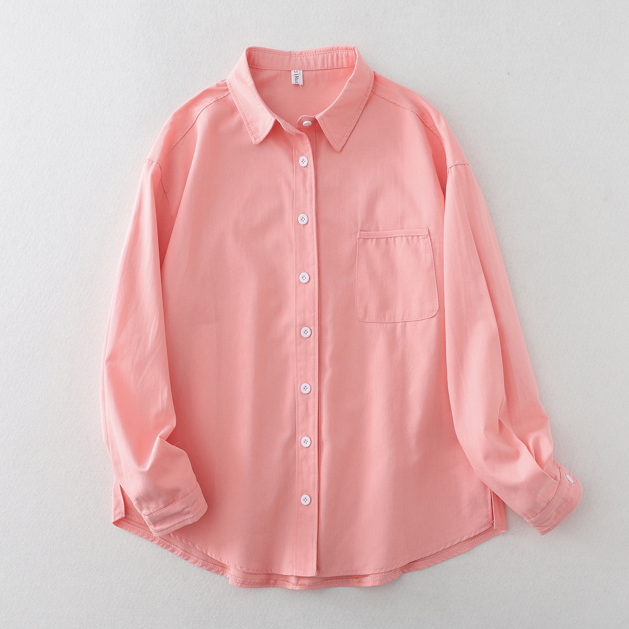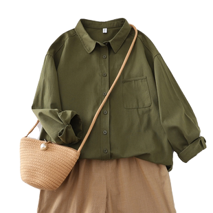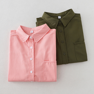 纯棉叠穿衬衣休闲宽松上衣 女秋季 橘子树在哪儿韩系polo领长袖 衬衫