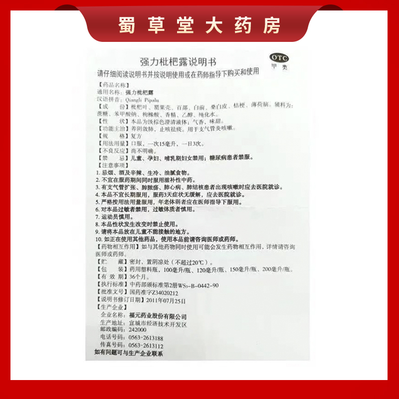邦静 强力枇杷露 养阴敛肺 正品 止咳祛痰 盒 保证 1瓶 福元 200ml
