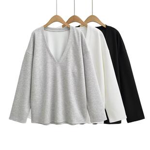 包邮 嘻哈款 美式 休闲大版 卫衣女 慵懒风宽松大V领长T恤24年春款