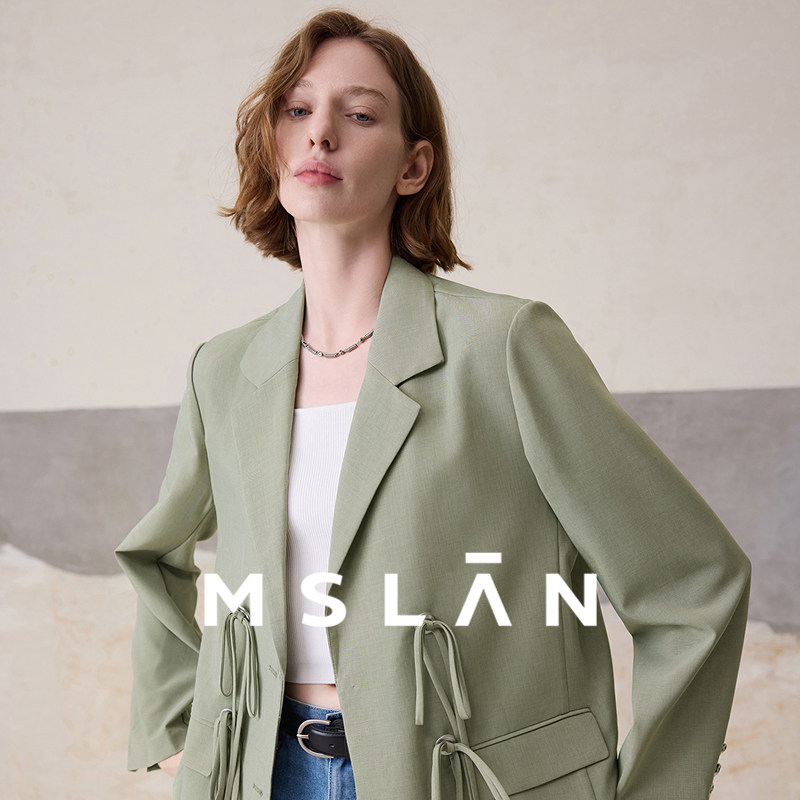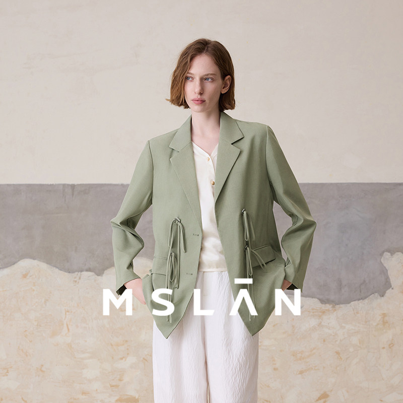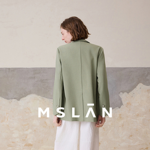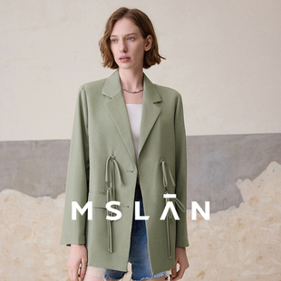 MSLAN春夏时尚 女 通勤宽松系带外套绿色西装