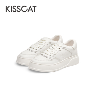 女士平底鞋 女纯白色运动休闲鞋 厚底增高小白鞋 KISSCAT接吻猫秋季
