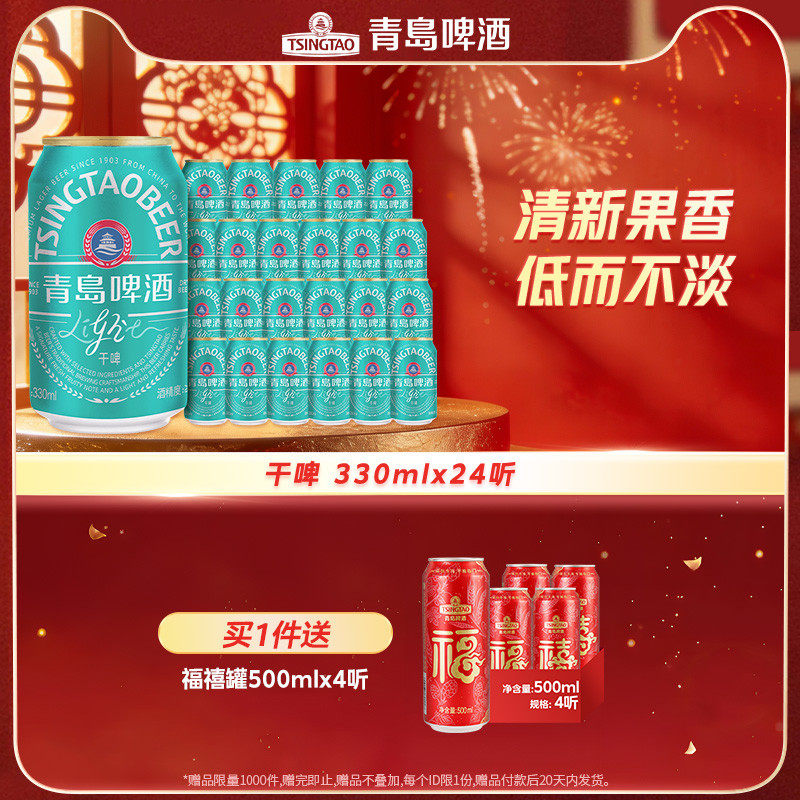 青岛啤酒轻干系列330ml 24听罐啤干啤0糖