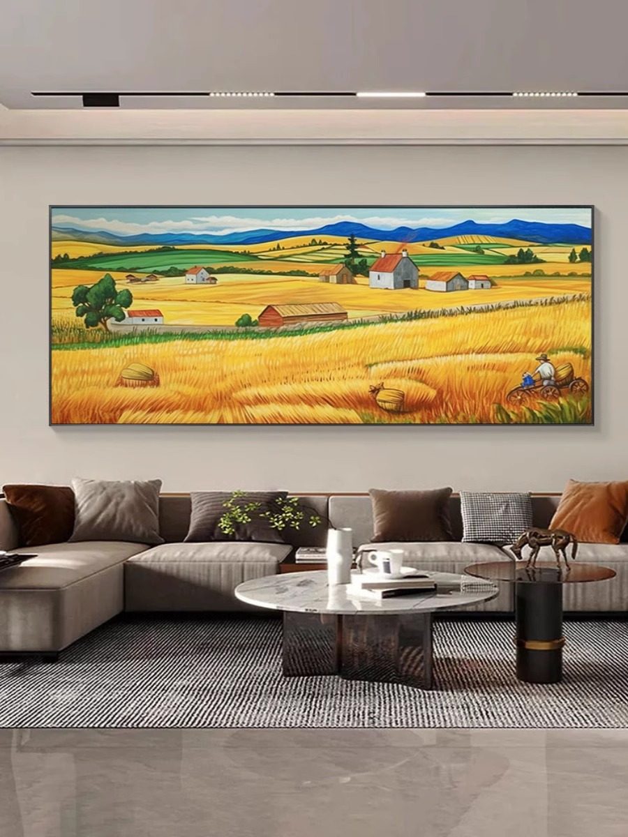 梵高丰收世界名画客厅装 麦田油画沙发背景墙壁画轻奢挂画 饰画横版