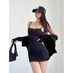 liviahome卡戴珊蕾丝花边吊带连衣裙女2025新款 辣妹收腰包臀短裙