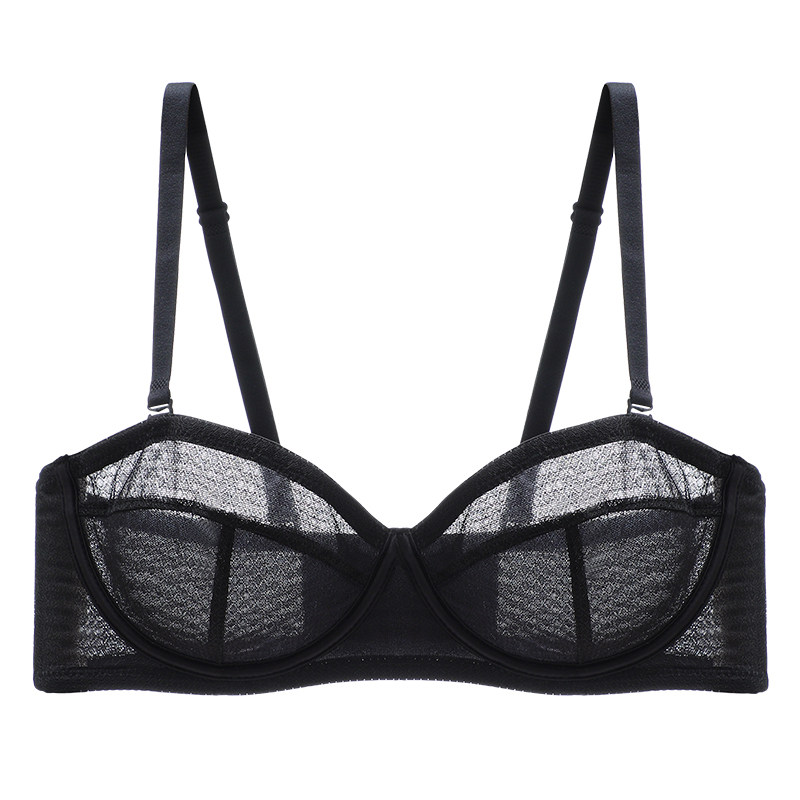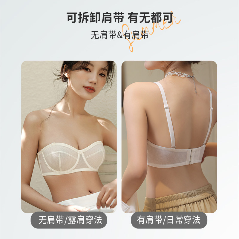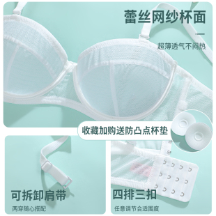 超薄款 性感白色蕾丝上托 内衣女无肩带聚拢防滑大胸显小文胸罩夏季
