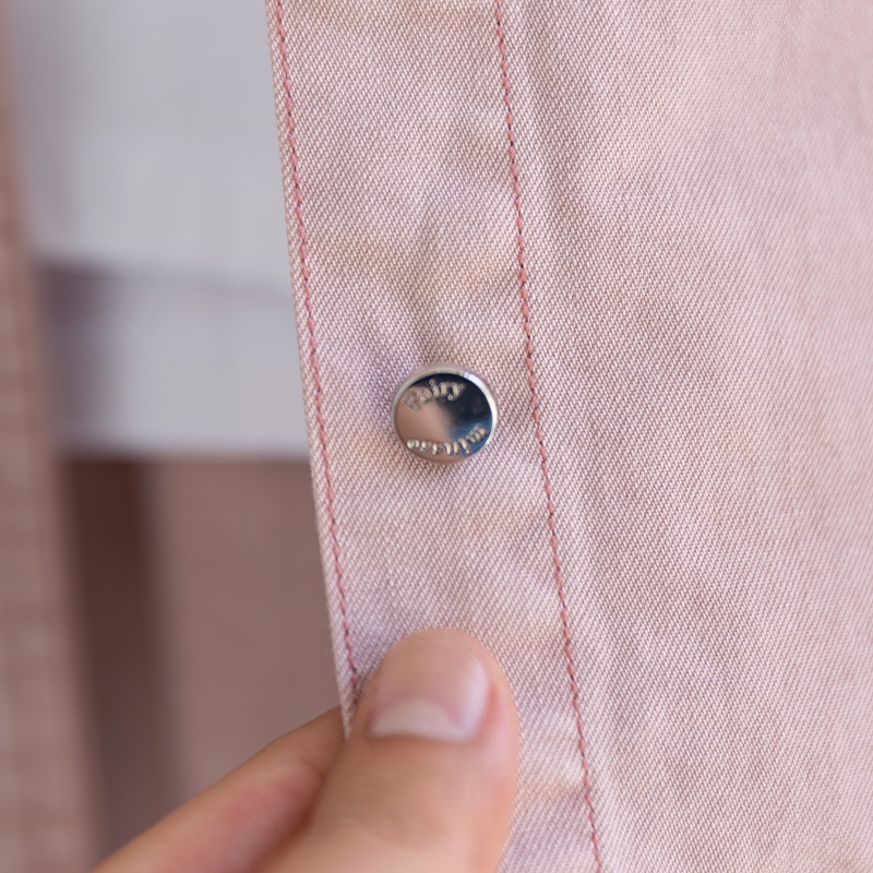 出口外贸高端纯棉粉色牛仔衬衫 口袋宽松上衣外套小众 女英伦风工装