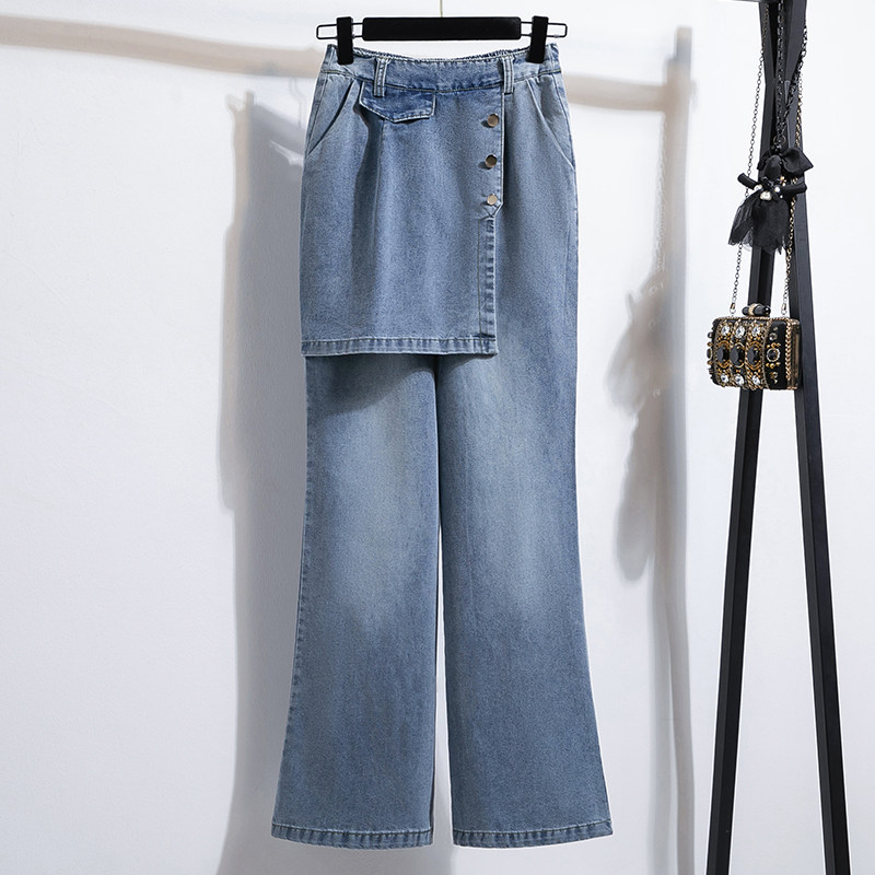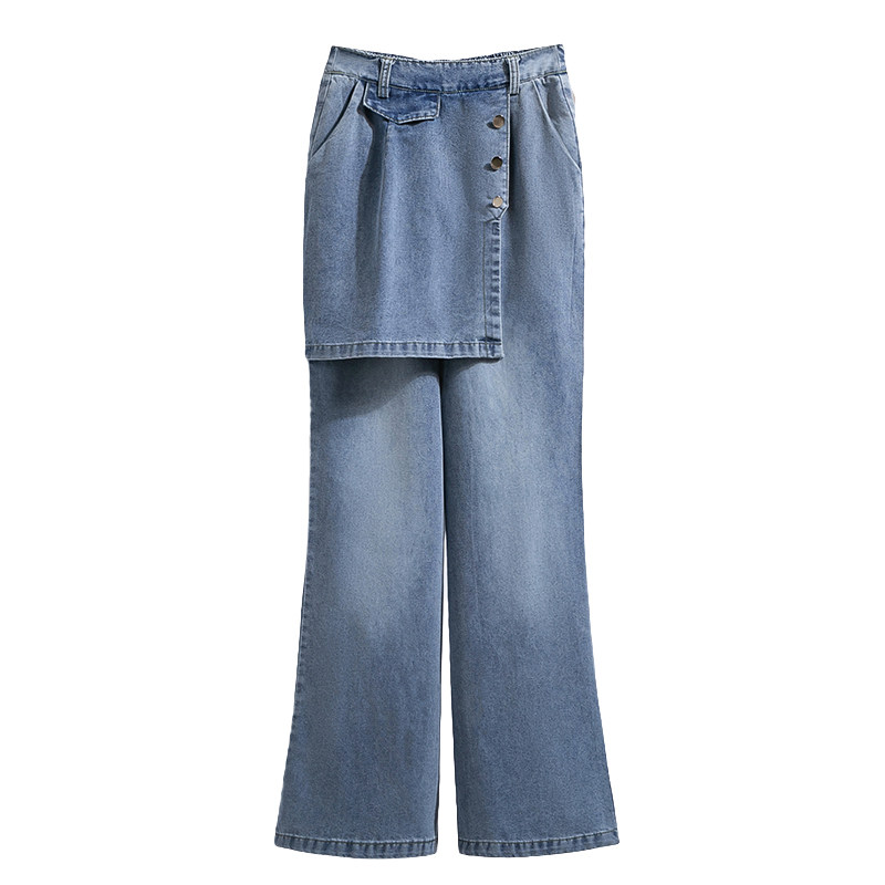 休闲拖地长裤 微喇牛仔裤 高腰显瘦喇叭裤 2025新款 女春秋假两件裙裤