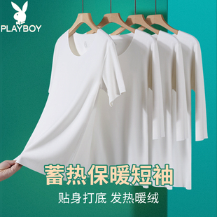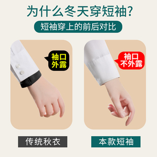 内穿搭发热打底衫 白色保暖七分袖 t恤加绒加厚秋冬季 短袖 上衣男士