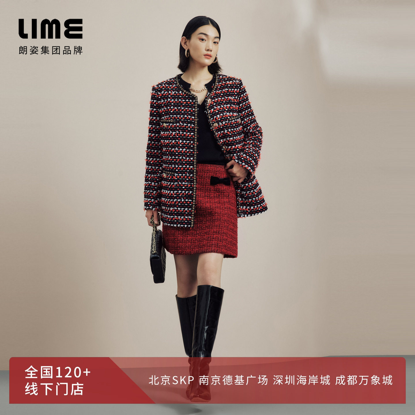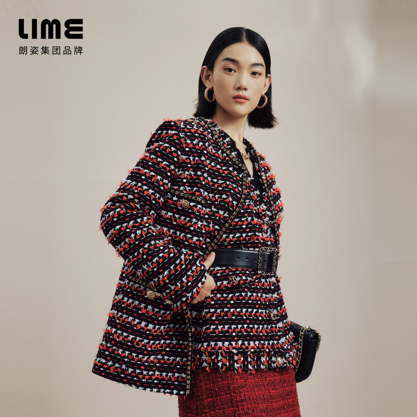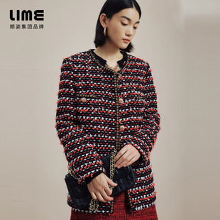 LIME莱茵轻奢千金风羊毛混纺粗花呢短上衣秋H版 型宽松复古外套