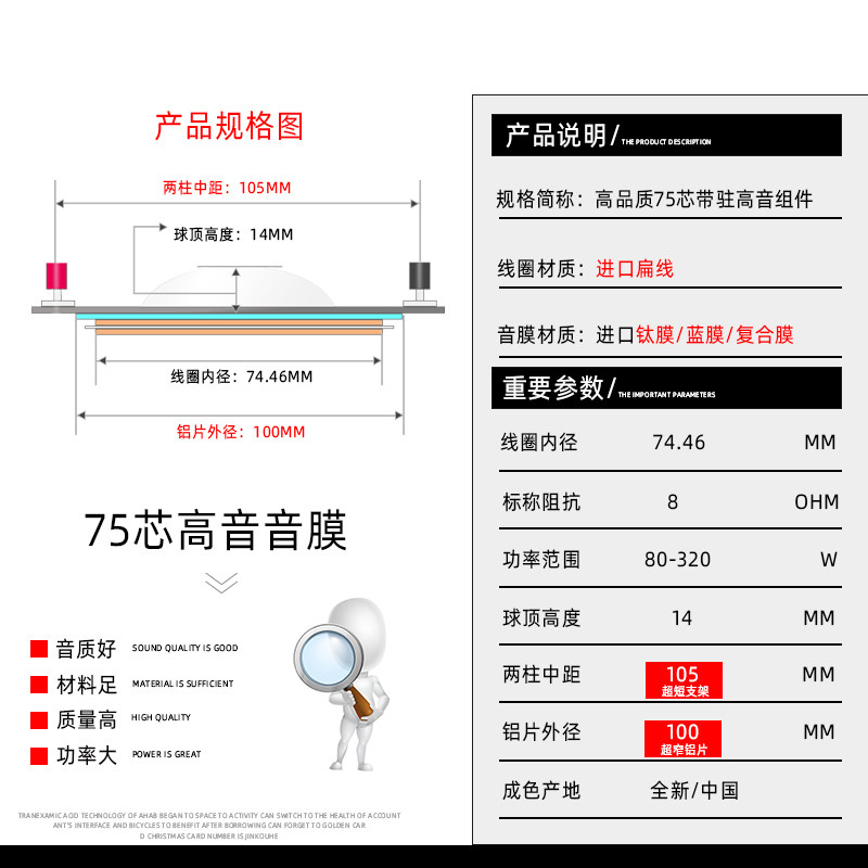 DIY音响手工制作音箱57mm喇叭4欧5W全频多媒体喇叭耐高温扬声器