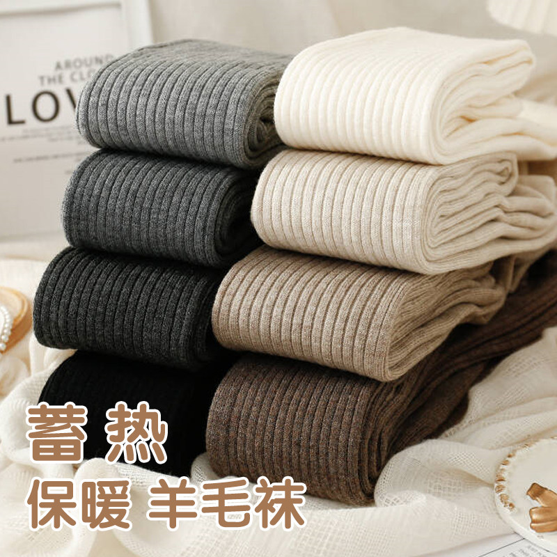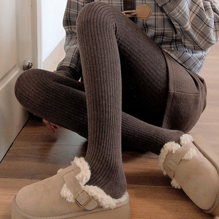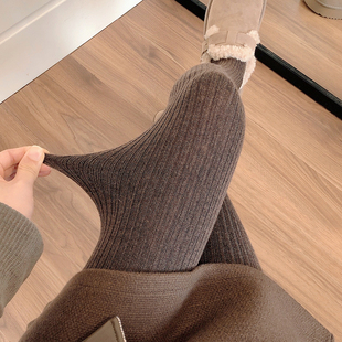 袜子 袜女保暖羊毛竖条纹显瘦JK烟灰色连裤 秋冬季 加厚咖啡色打底裤