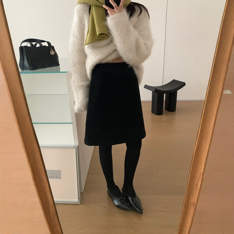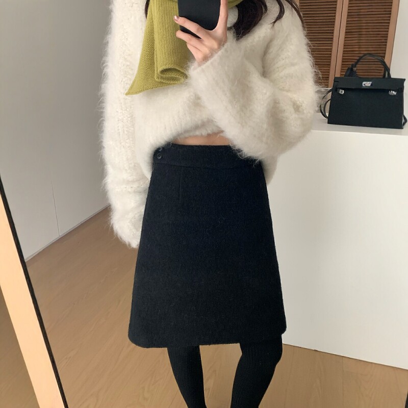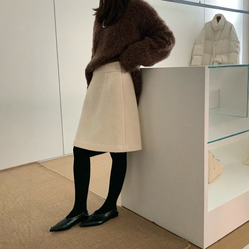白色羊毛呢半身裙中裙女秋冬大码 高腰遮胯直筒包臀裙小个子a字裙