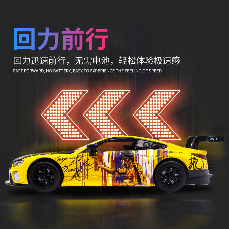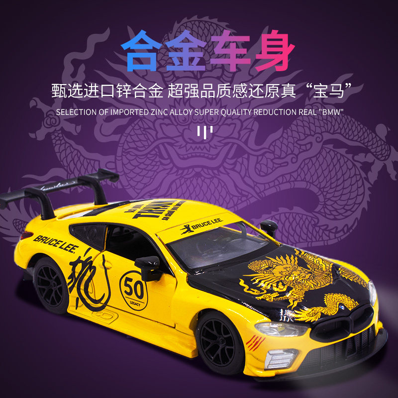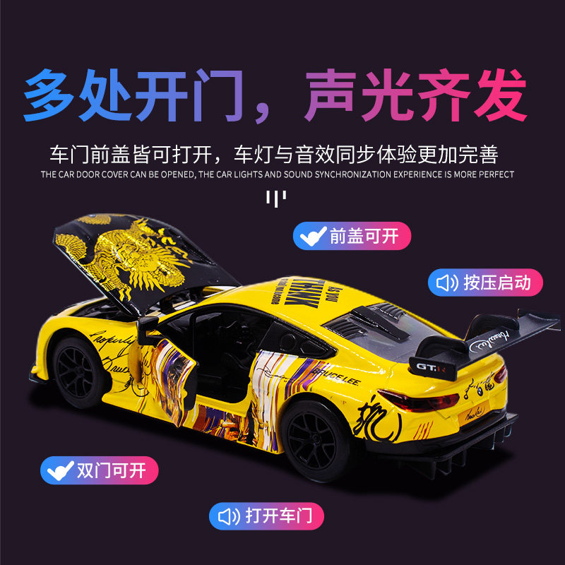 GTE李小龙联名拉花款 32宝马M8 声光开门回力合金车模型 授权1 正品